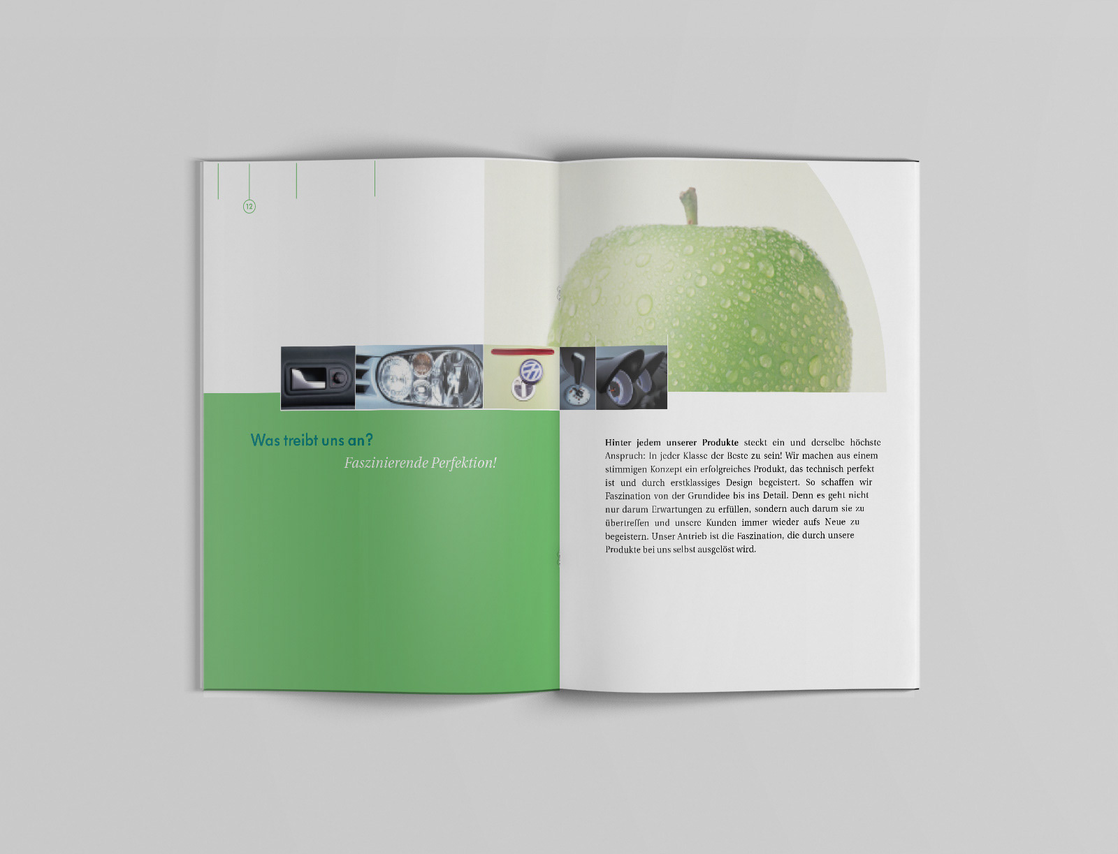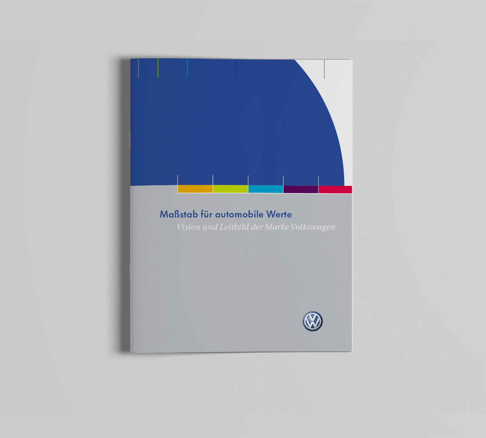 „Vision und Leitbild der Marke Volkswagen“ Die Broschüre im Taschenformat kam in 11 Ländern und Sprachen zum Einsatz. Außerdem wurden Plakate und Karten gestaltet. Auftraggeber: VW, internes Marketing